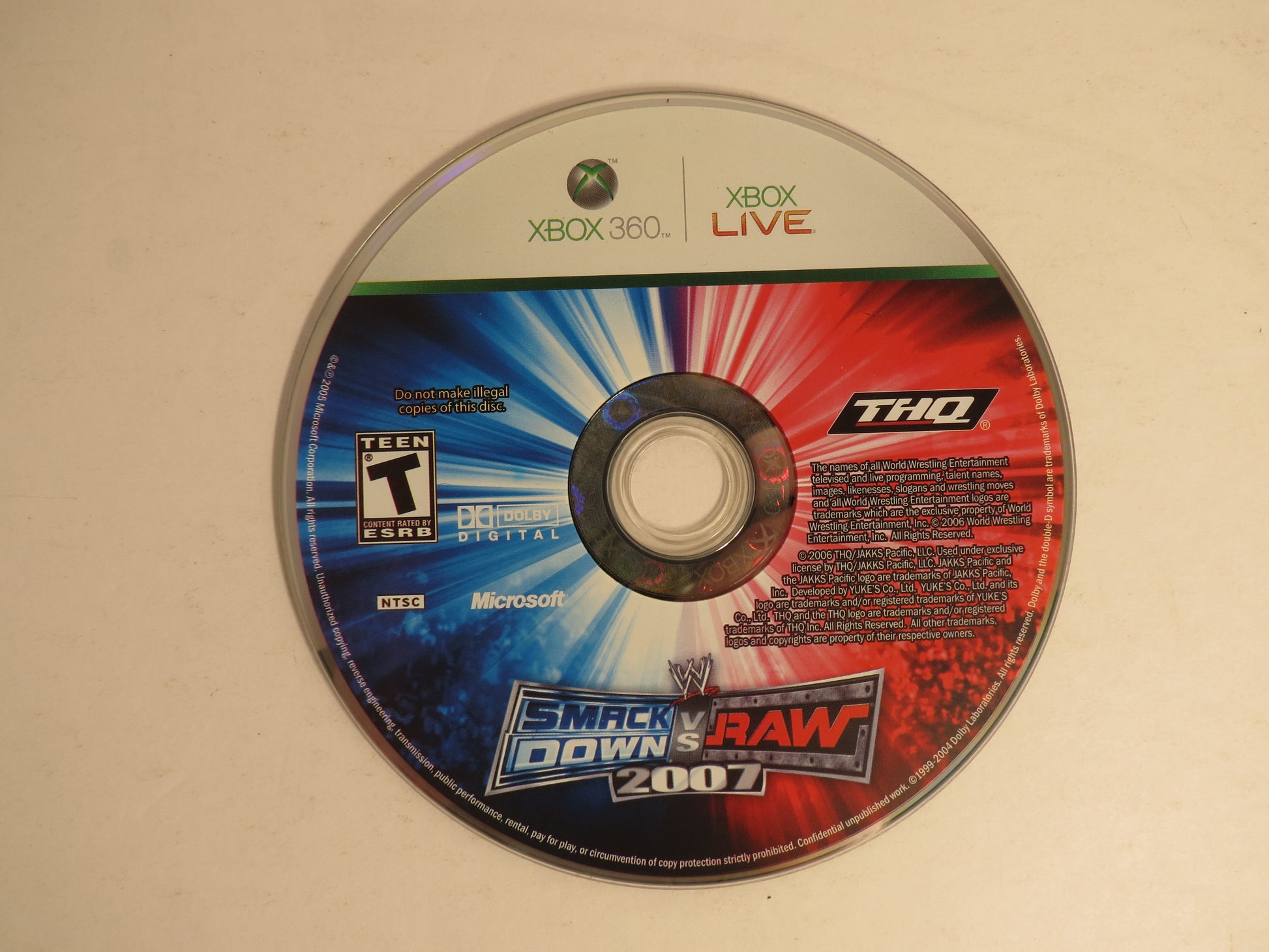 WWE Smack Down vs Raw 2007 Xbox 360 Game CB